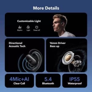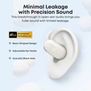 Les Soundcore V20i sont des écouteurs open-ear de nouvelle génération conçus pour un port prolongé sans pression sur les oreilles. Grâce à leur technologie d’induction d’air, ils vous permettent d’écouter votre musique tout en restant pleinement conscient de votre environnement – idéal en ville comme en plein air.
