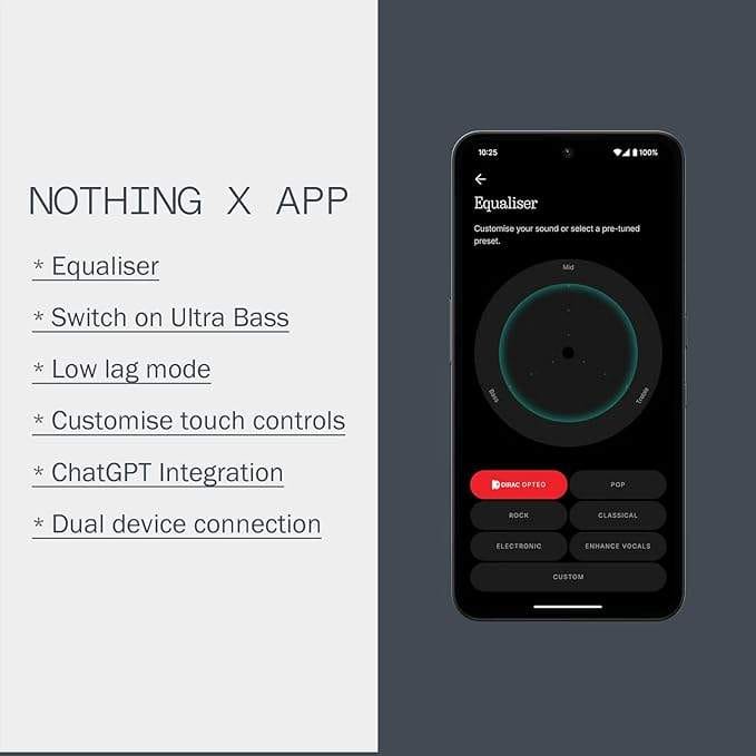 ANC 42dB + Son LCP Équilibré + App Nothing X + Design Distinctif = L’Alternative Raffinée.