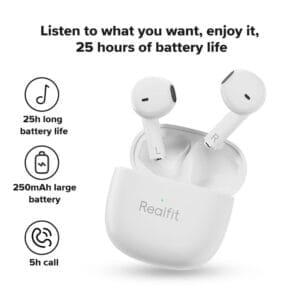 Qualité Audio Supérieure: Profitez d’un son cristallin et immersif grâce aux haut-parleurs de qualité supérieure des écouteurs RealFit F1. Que vous écoutiez de la musique, regardiez des films ou passiez des appels, la qualité audio exceptionnelle vous impressionnera à chaque utilisation.