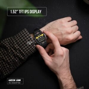 La Green Lion Gear Fit Smart Watch se distingue par son design moderne et raffiné. Son écran TFT IPS de 1.52” offre une clarté exceptionnelle, parfaite pour afficher vos notifications, appels et données de santé avec précision.