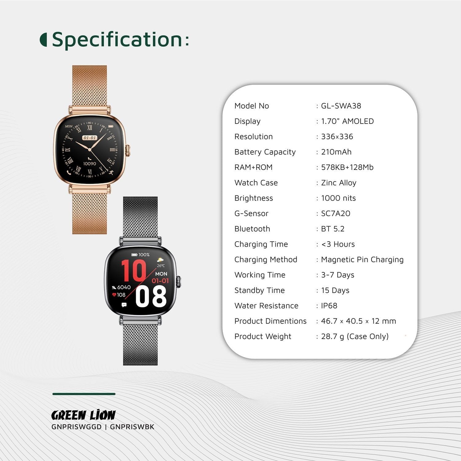 Green Lion Princess – Smartwatch Dame Premium