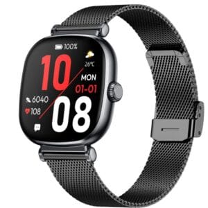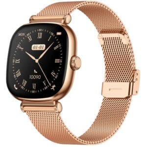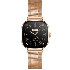 Smartwatch conçue spécialement pour la femme moderne, alliant esthétique raffinée et fonctionnalités santé avancées. Son écran AMOLED toujours actif, son suivi médical précis et son design délicat en font la compagne idéale pour allier style, santé et connectivité au quotidien.