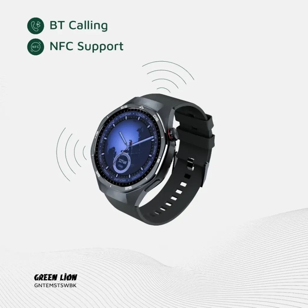 La Green Lion Tech Master Smart Watch associe technologie, santé et style. Avec son écran AMOLED, ses capteurs précis et ses fonctions intelligentes (NFC, navigation, appels Bluetooth), elle est idéale pour les personnes actives et connectées.
