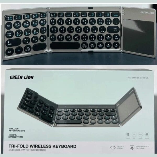 Le Clavier Bluetooth pliable Green Lion est un clavier portable moderne conçu pour les utilisateurs qui recherchent mobilité, confort et productivité. Grâce à son design pliable à trois volets, il devient extrêmement compact et facile à transporter, ce qui le rend idéal pour les voyages, le télétravail ou l’utilisation avec tablette et smartphone.