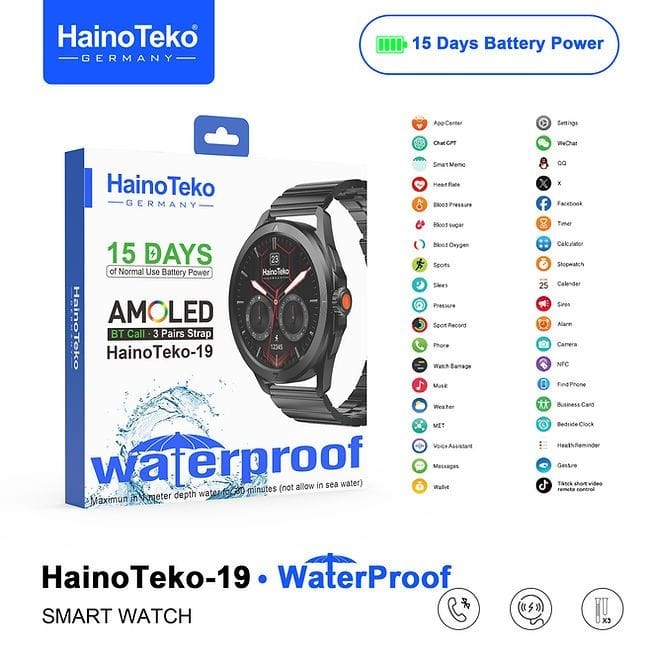 HainoTeko-19 Waterproof – Smart Watch Ecran AMOLED avec 15 jours d’Autonomie