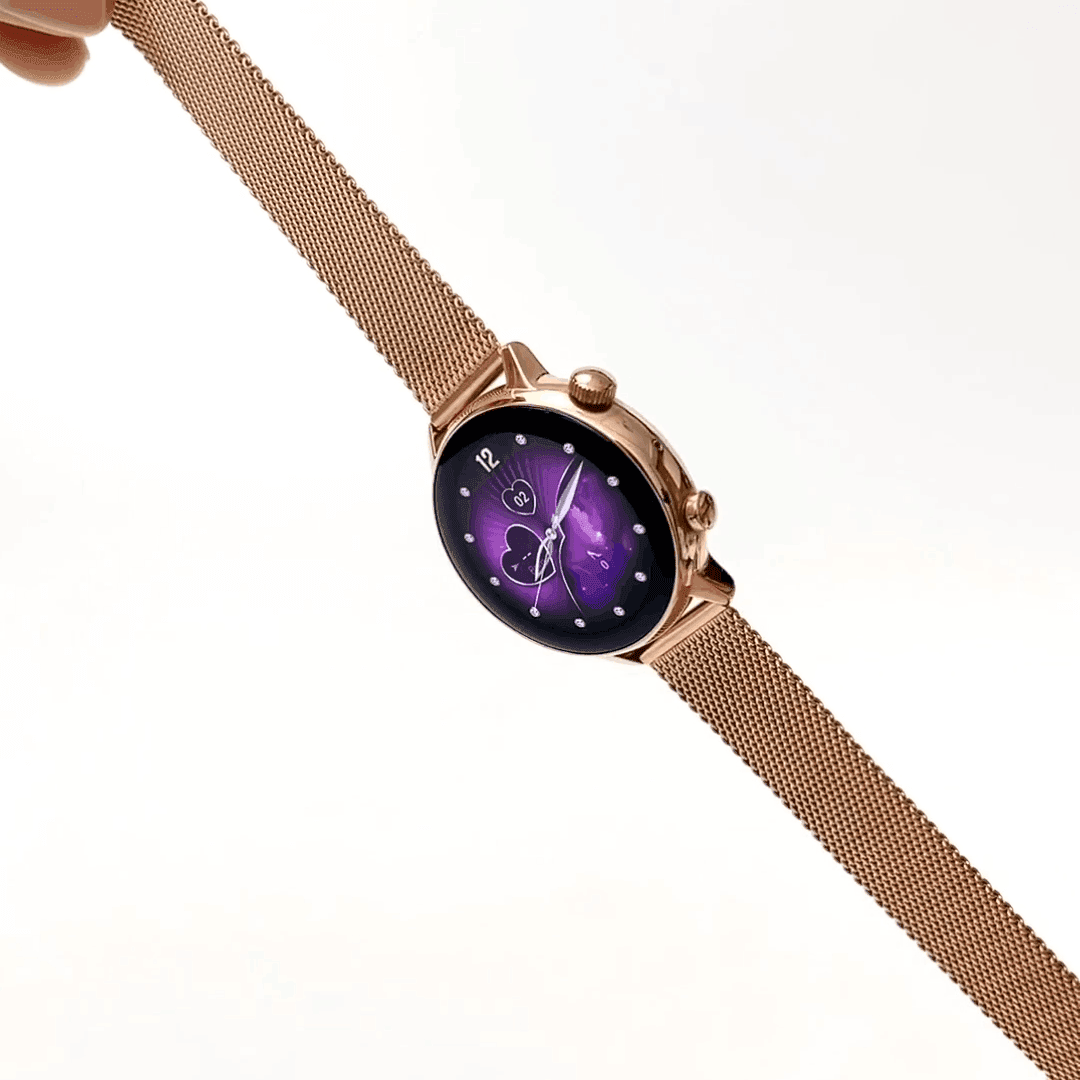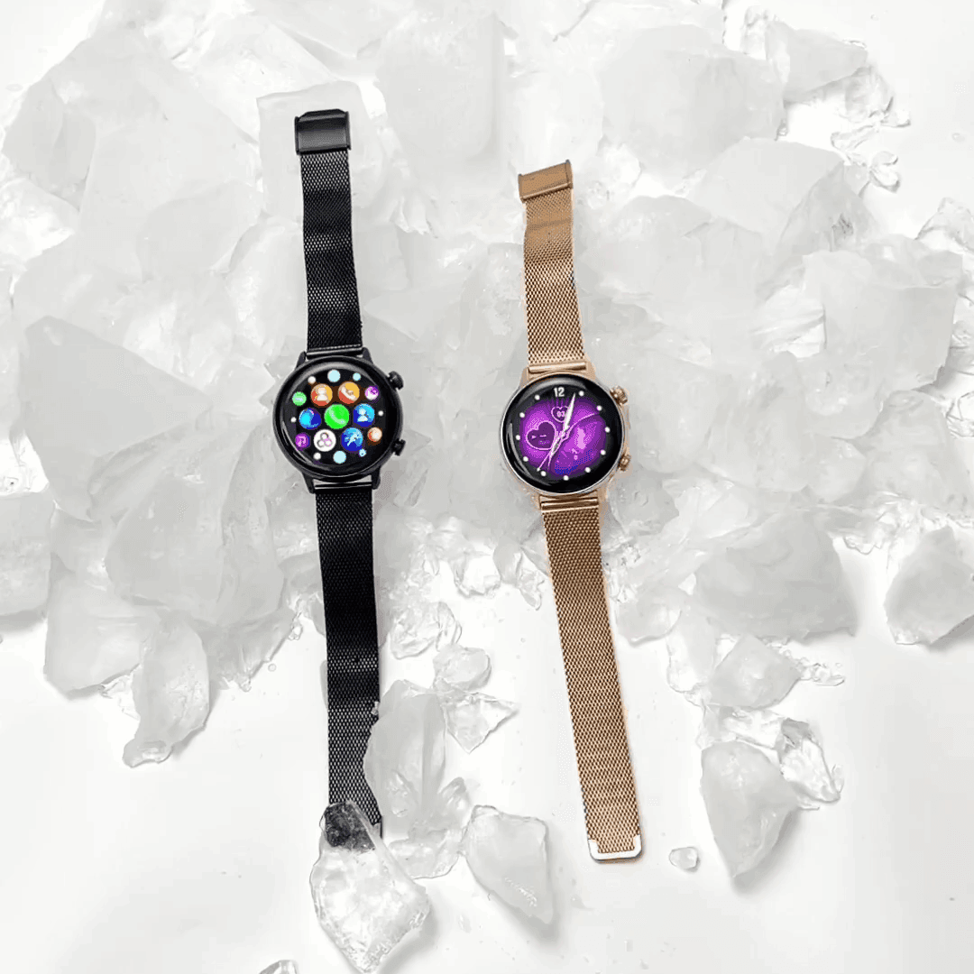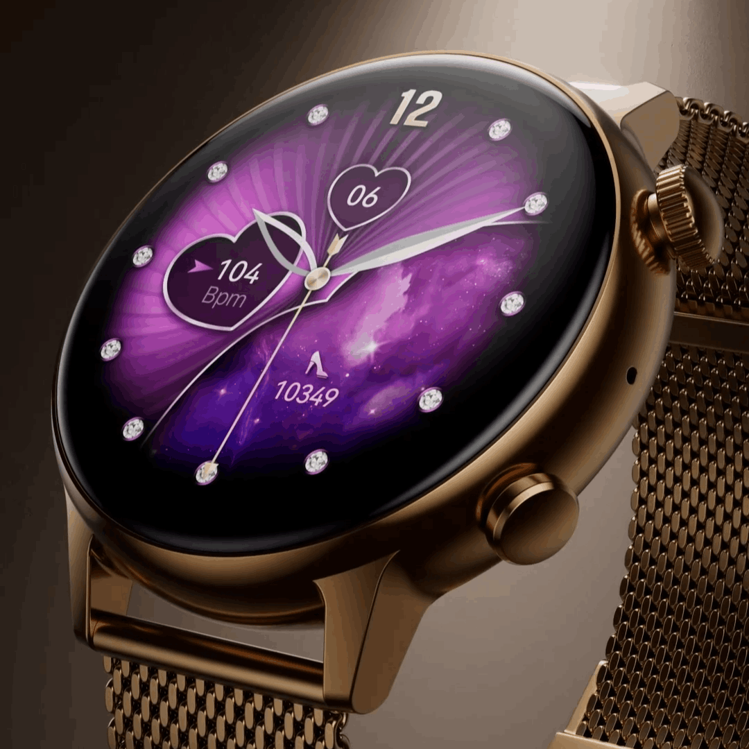 Il offre le meilleur rapport style-fonctionnalité avec ses trois bracelets inclus, son écran AMOLED premium et ses fonctions de communication complètes, le tout dans un design élégant spécialement pensé pour les femmes.