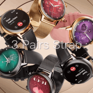 Conçu pour la femme moderne, ce smartwatch allie esthétique raffinée et technologie pratique. Avec ses trois bracelets interchangeables et ses fonctions connectées complètes, il s’adapte à votre style de vie, du bureau à la salle de sport.