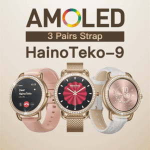 HainoTeko-9 Waterproof – Smart Watch AMOLED for Ladies – Golden Edition