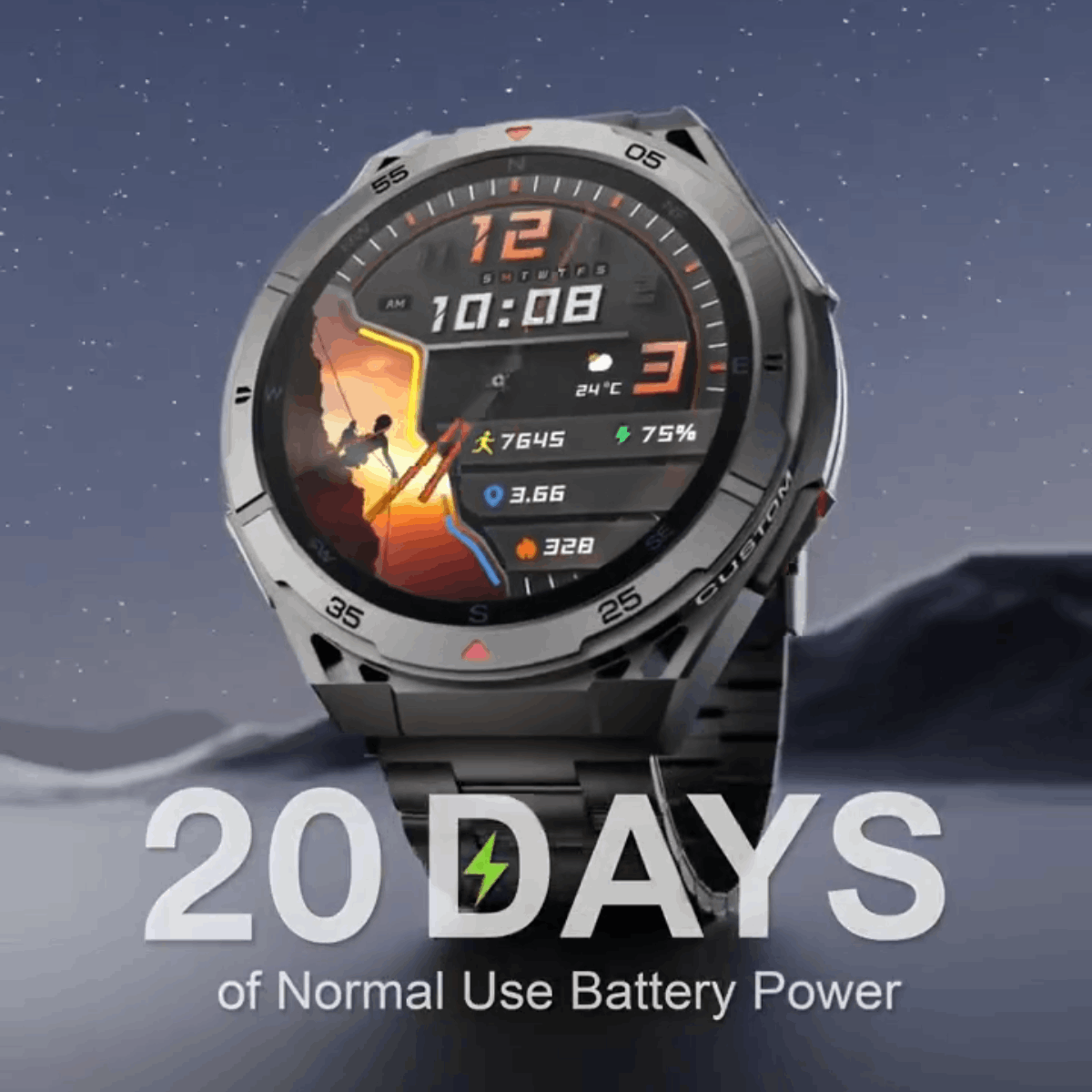 Grâce à sa batterie performante, la montre peut fonctionner jusqu’à 20 jours sans utiliser le GPS. Cela garantit une grande autonomie pour un usage prolongé sans recharge fréquente.