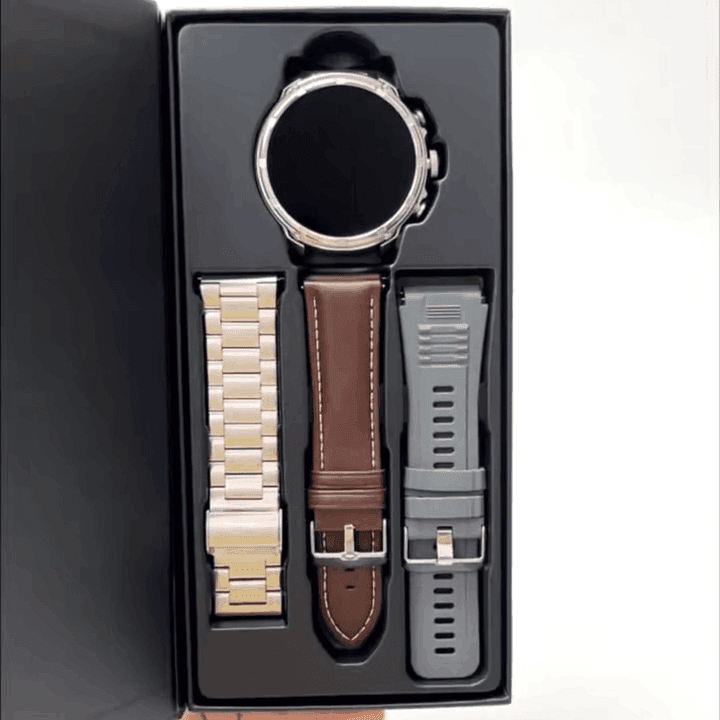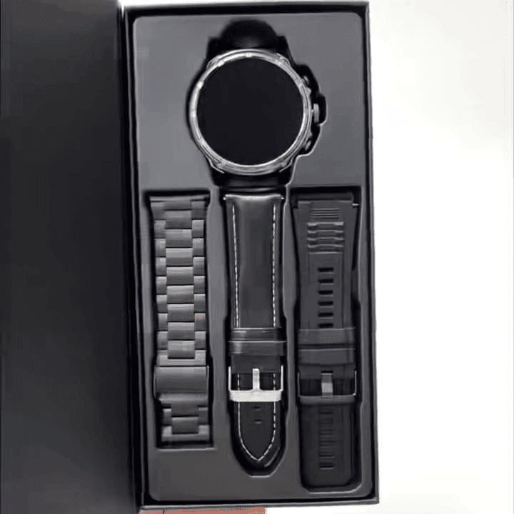 Bracelets inclus : 1 acier inoxydable + 1 cuir + 1 silicone