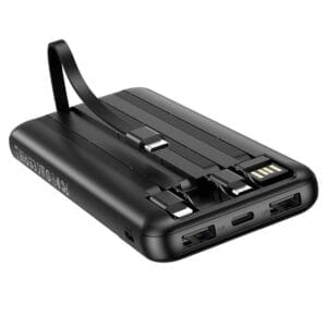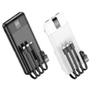 La BOROFONE BJ20 est une power bank de 10000mAh conçue pour allier performance et praticité. Avec ses câbles intégrés, ses multiples entrées et sorties, et son design compact, elle est idéale pour rester connecté où que vous soyez.