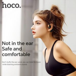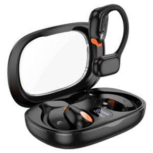 - Conception à Crochet d’Oreille : Les écouteurs sont conçus avec un crochet d’oreille ergonomique, assurant un maintien sécurisé et confortable, idéal pour les activités sportives et les déplacements.