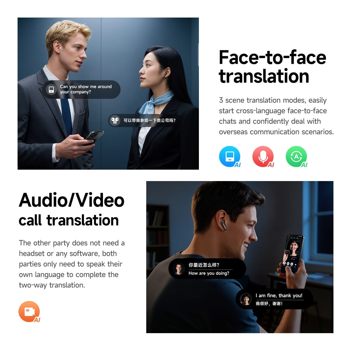 Connexion rapide, fluide et sans latence grâce au Bluetooth 5.4, assurant une excellente stabilité pour les appels, la musique et la traduction en temps réel.