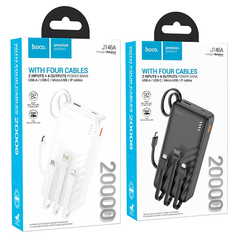 🔋 Power bank “J146A Night Tide” – 4 Câbles Intégrés 20000mAh