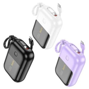 Le Q20 Fountain est une batterie externe compacte mais puissante, conçue pour vous accompagner partout. Avec ses câbles intégrés (Lightning & Type-C) + un port Type-C supplémentaire, il vous permet de charger jusqu’à trois appareils simultanément, sans jamais chercher un câble.