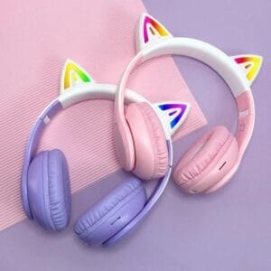 Laissez libre cours à votre style avec le casque Bluetooth Hoco W42 Cat Ears, conçu pour apporter une touche amusante et colorée à votre quotidien. Disponible en rose, bleu et mauve, ce casque combine un design félin unique avec des lumières LED en dégradé 7 couleurs, une connectivité sans fil et filaire, et des performances audio impressionnantes.