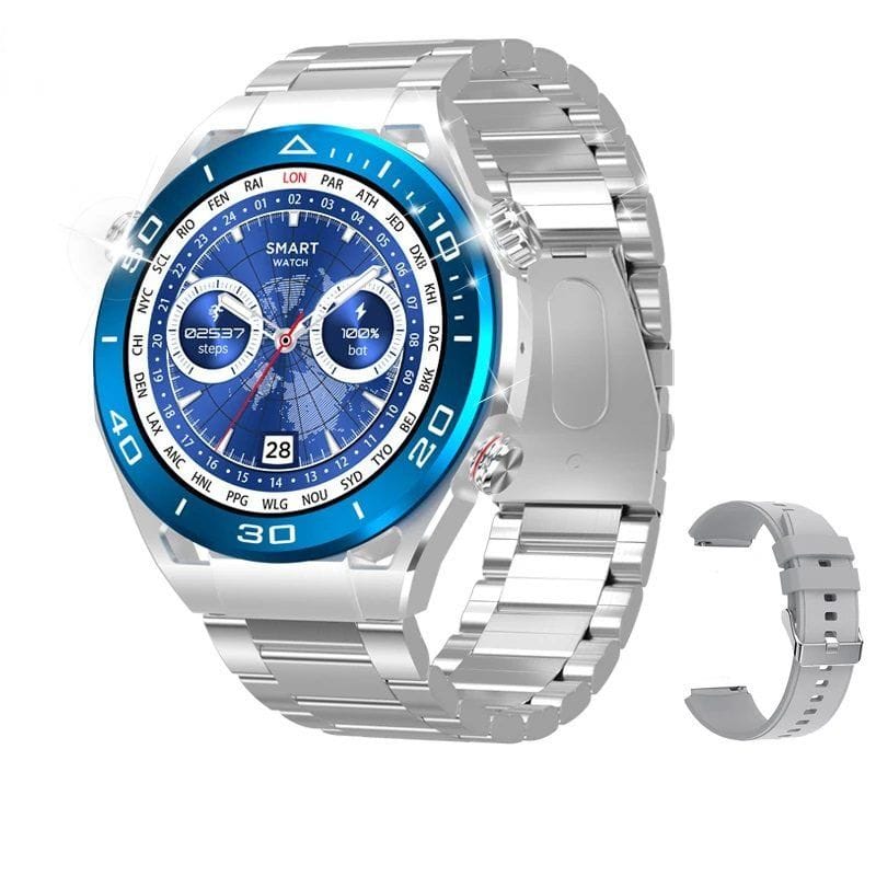 • 2 bracelets inclus – Acier inoxydable (élégance) + Silicone (sport/confort)