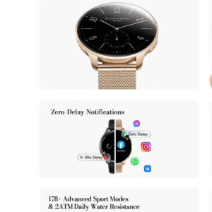 La Smart Watch Kieslect Elfin séduit par son profil ultra-mince de seulement 6,7 mm, offrant un look élégant, léger et raffiné. Son boîtier en alliage zinc-aluminium assure solidité et finition premium, idéale pour un port confortable toute la journée, que ce soit au travail ou lors de sorties.