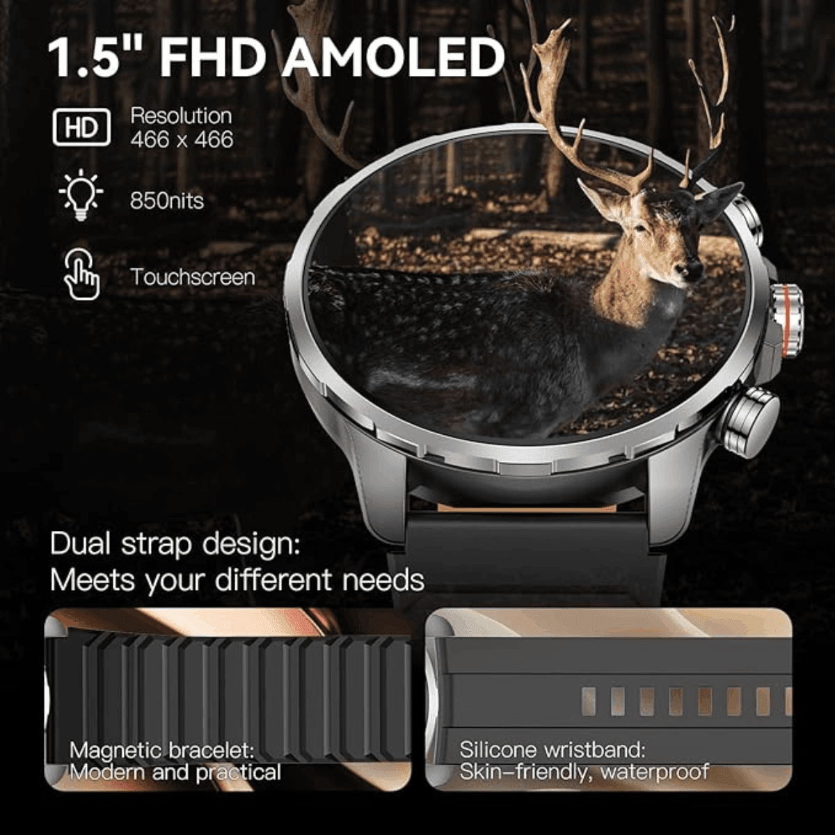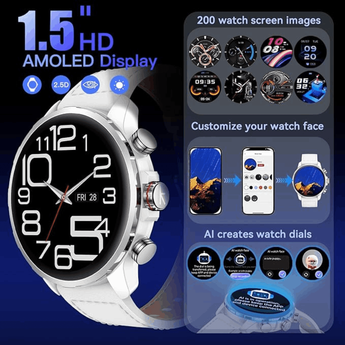 🖥️ Écran AMOLED HD 1,5” Always-On