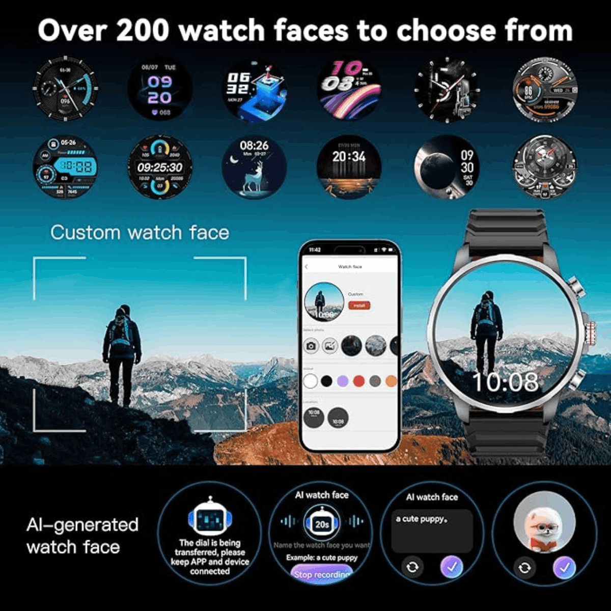 Son écran AMOLED HD de 1,5 pouce offre des couleurs éclatantes, une excellente luminosité et une haute lisibilité, même en plein soleil. Le mode Always-On (AOD) permet de consulter l’heure et les infos essentielles en permanence.