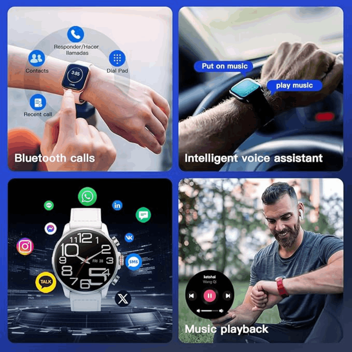 Reste connecté à tout moment grâce aux appels Bluetooth directement depuis la montre, à la gestion des SMS, aux réponses rapides, à la sauvegarde des contacts et à la compatibilité avec l’assistant vocal Siri.