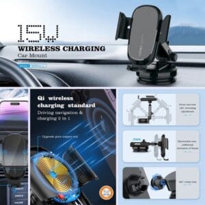 - Chargement Rapide et Sans Fil : Dites adieu aux câbles encombrants et profitez d’une charge rapide de 15W tout en conduisant.