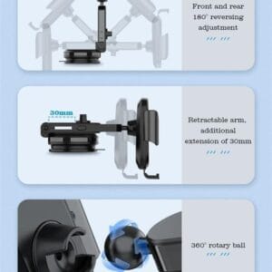 - Praticité et Sécurité : Gardez votre téléphone toujours à portée de vue sans quitter la route des yeux, avec un système de maintien automatique et sécurisé.