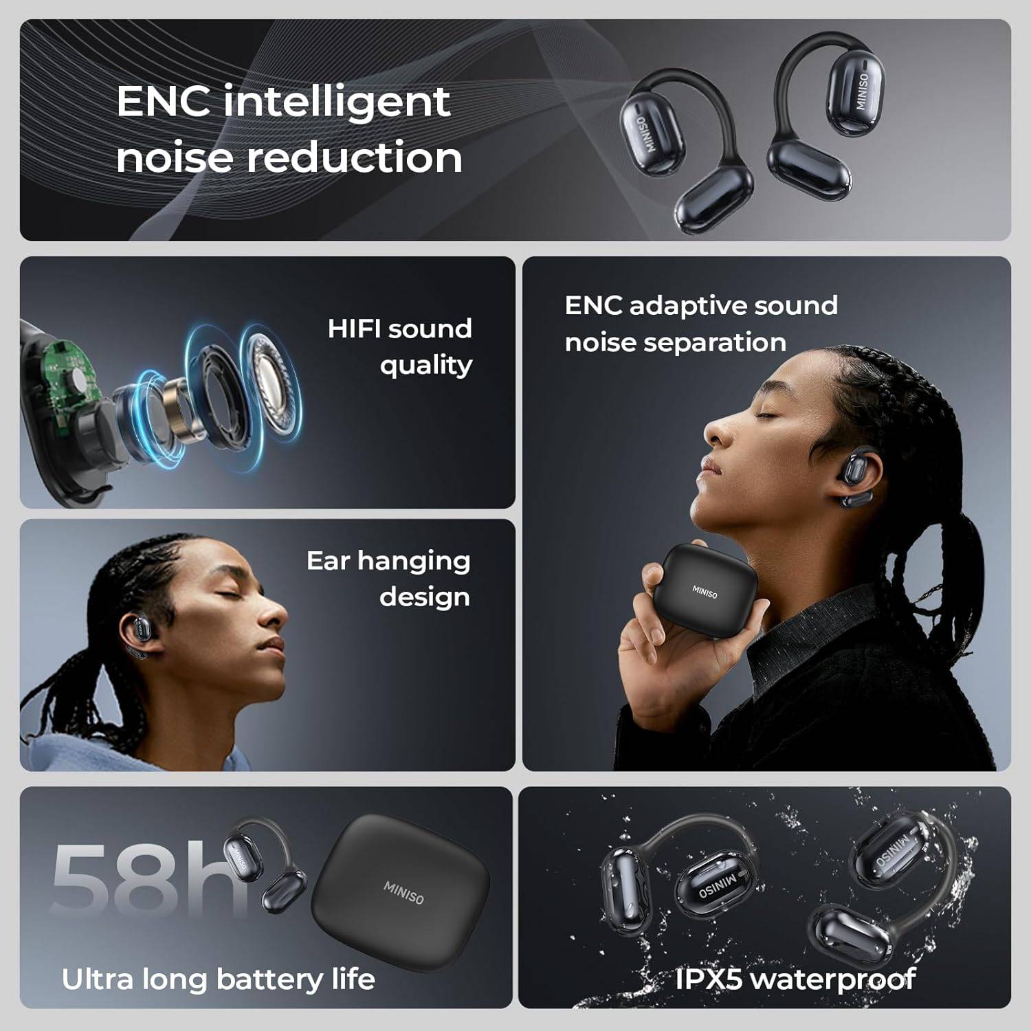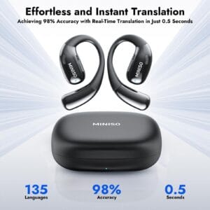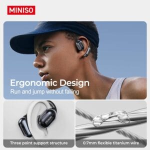 Les MINISO MS162 adoptent une conception open-ear, permettant d’entendre votre environnement tout en profitant de votre musique ou appels. Les crochets d’oreille en silicone léger assurent un ajustement sûr et confortable pour un port prolongé, idéal pour le sport, le travail ou les trajets quotidiens.