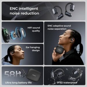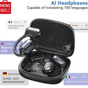Profitez d’un son cristallin, d’une traduction IA en temps réel et d’un confort ultra-léger avec ces écouteurs intra-auriculaires open-ear. Idéaux pour le sport, les voyages et vos activités quotidiennes, ils allient technologie intelligente, autonomie longue durée et style moderne.