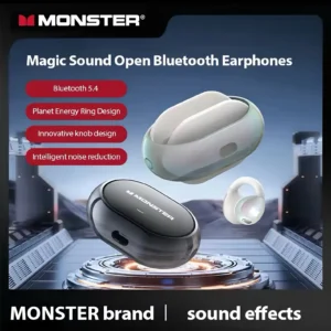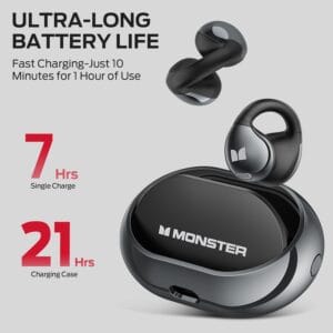 Les Écouteurs Bluetooth Monster Open Ear AC600 sont des écouteurs sans fil open-ear à clipser, conçus pour offrir une écoute confortable, sécurisée et performante. Grâce à leur design ouvert ergonomique, ils permettent de profiter d’un son puissant tout en restant conscient de l’environnement extérieur.