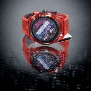 Boîtier : Nylon rouge – 44 mm de diamètre / 12 mm d’épaisseur