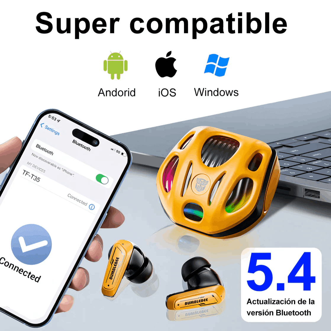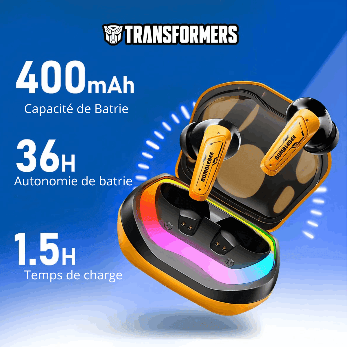 Les Écouteurs Bluetooth Transformers TF-T35 sont des écouteurs sans fil True Wireless Stereo (TWS) conçus pour offrir une expérience audio puissante, aussi bien pour le gaming que pour l’écoute musicale quotidienne. Inspirés de l’univers Transformers, ils combinent design futuriste, technologie avancée et performances audio immersives.