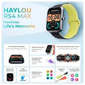 🎧 HAYLOU RS4 Max – Montre Connectée 1,91″ HD, 127 Modes Sport & IP68