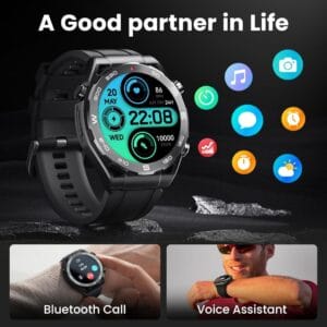 Son grand écran AMOLED 1,43″ HD offre une lisibilité exceptionnelle et des transitions fluides grâce à son taux de rafraîchissement 60 Hz. Le boîtier en alliage renforcé et le verre anti-rayures répondent aux exigences militaires (étanchéité, chocs, température extrême).