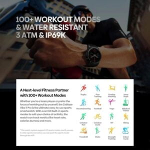 - Plus de 100 modes sportifs : Que vous soyez adepte du fitness, de la course, du cyclisme ou d’autres sports, le Zeblaze Vibe 7 Pro propose plus de 100 modes sportifs pour un suivi précis de vos performances, incluant la fréquence cardiaque, les calories brûlées, et plus encore.